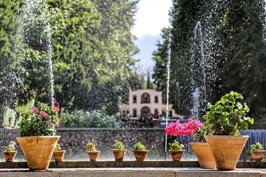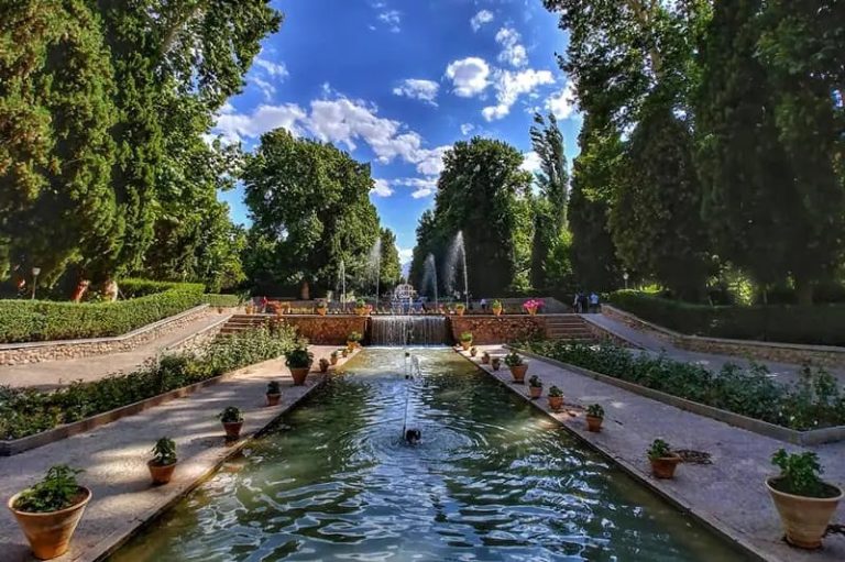 ۱۲ سطح پلکانی بههمراه آبشارها، فوارهها و دو حوضچه پر آب که از دو سمت با درختان بلند قامت باغ احاطه شدهاند در برابر دیدگانتان ظاهر میشوند. نهر آبی که در این مکان جریان دارد از بالای باغ وارد میشود. منبع این نهر، قنات تیگران است که از ارتفاعات جوپار سرچشمه میگیرد و بعد از آبیاری کرتها و مسیرها بهصورت آبشارهایی در سطح پلکانی و سطح شیبدار جاری میشود و تا بیرون باغ ادامه دارد و بهسمت ماهان میرود.